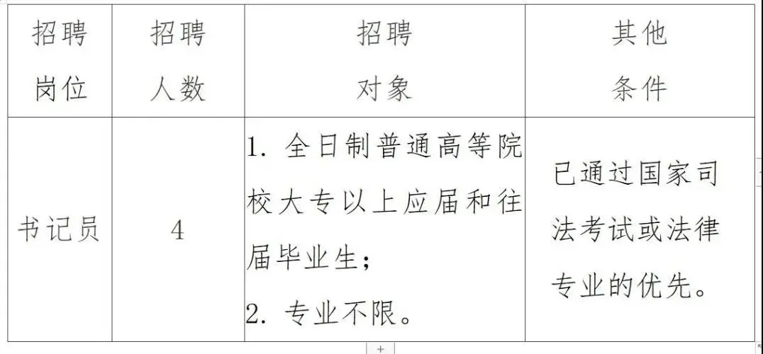 書記員招聘對象為全日制普通高等院校大專以上學(xué)歷的應(yīng)、往屆畢業(yè)生,在2021年7月30日以前已經(jīng)取得畢業(yè)證。
