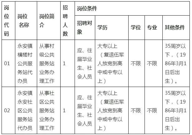 本次公開招聘村(社區(qū))公共服務(wù)站業(yè)務(wù)代辦員2名,每人只能報(bào)考一個(gè)崗位。