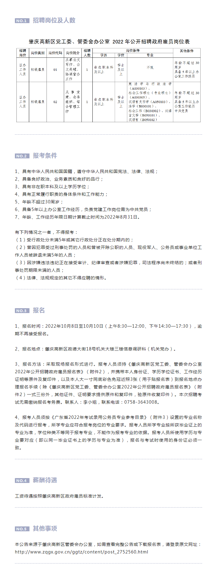 肇慶高新區(qū)黨工委、管委會(huì)辦公室2022年公開(kāi)招聘政府雇員公告