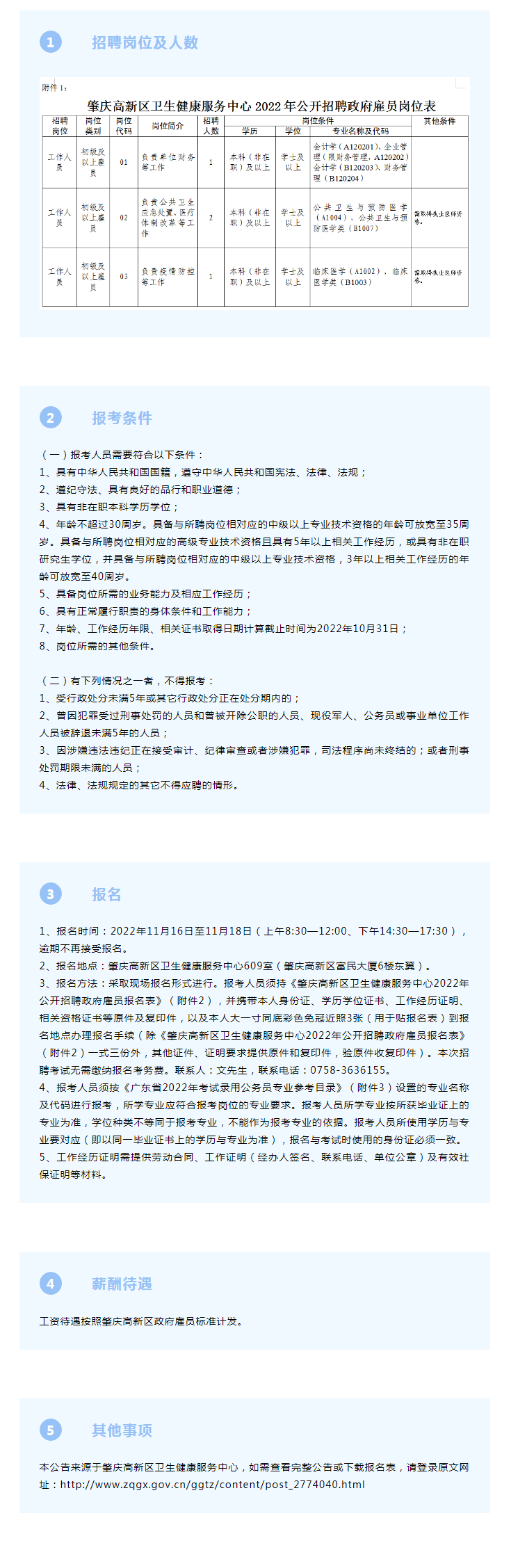 肇慶高新區(qū)衛(wèi)生健康服務(wù)中心2022年公開(kāi)招聘政府雇員公告
